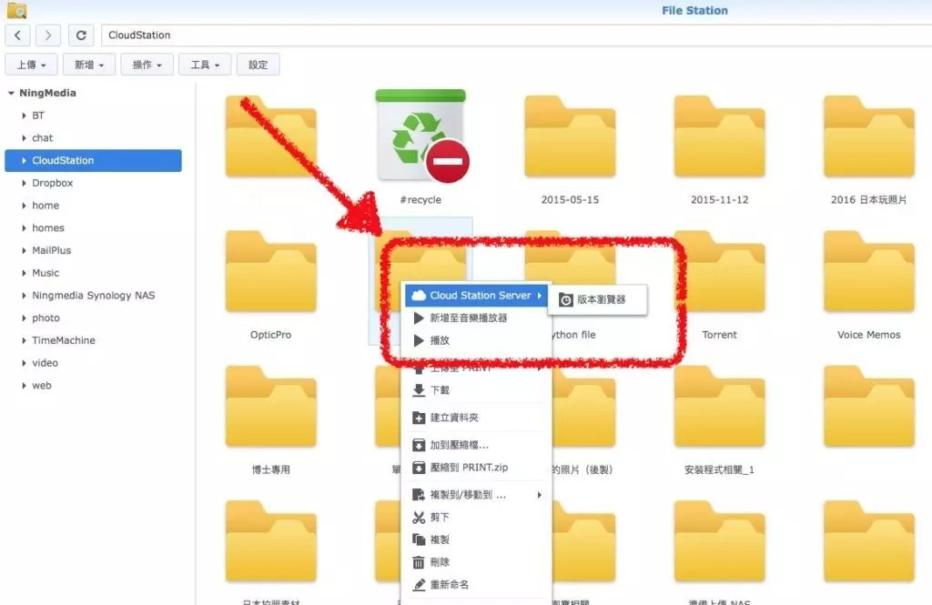 另外,像是 Cloud Station 同步这类功能也都有提供类似 Dropbox 的版本恢复功能,也就是能将几天前的旧版本数据、甚至是已删除的数据救回来的功能,使用方法就跟前面「Windows电脑备份」的还原备份一样,非常简单。